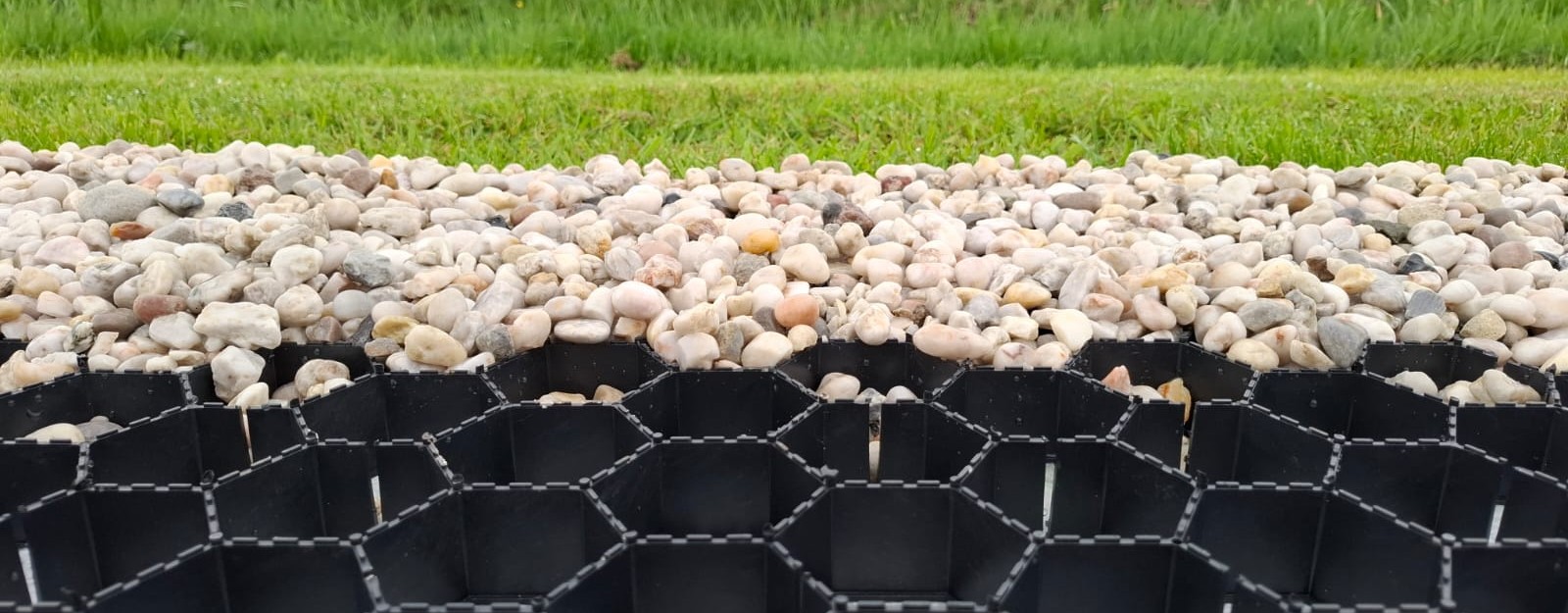 Met grindmatten van Grintje Zeker maakt u uw siergrindpad of oprit stabiel, waterdoorlatend en onderhoudsvriendelijk. De matten zorgen dat het grind op zijn plek blijft liggen, waardoor kuilen en spoorvorming voorkomen worden.