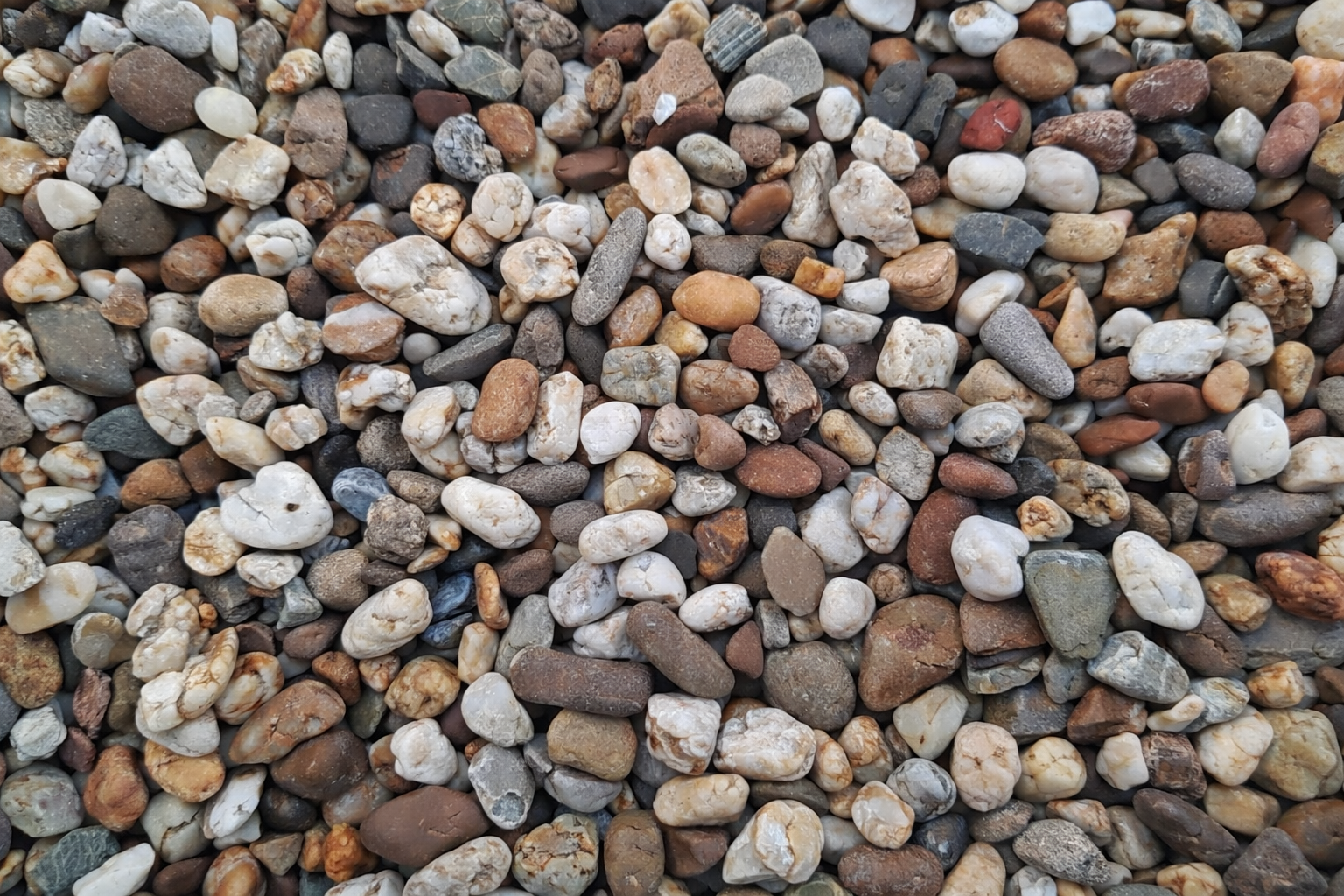 Bont grind is een riviergrind en een goedkope oplossing voor verharding van de oprit of looppaden. De kleur is bont genuanceerd variërend van wit (en geel), grijs en zwart.